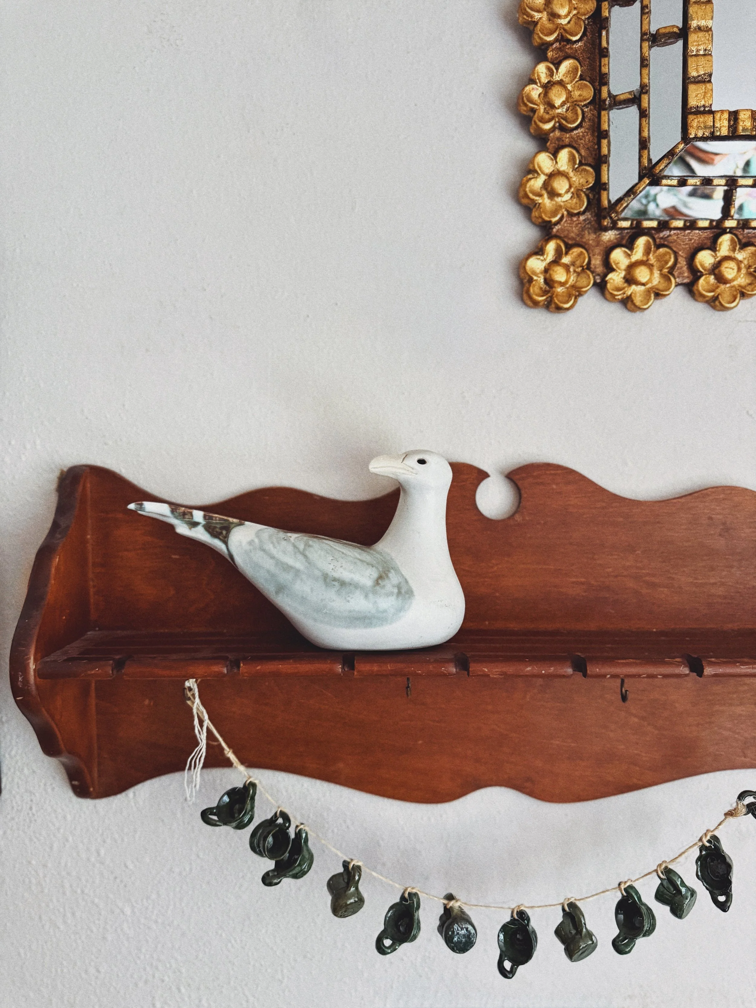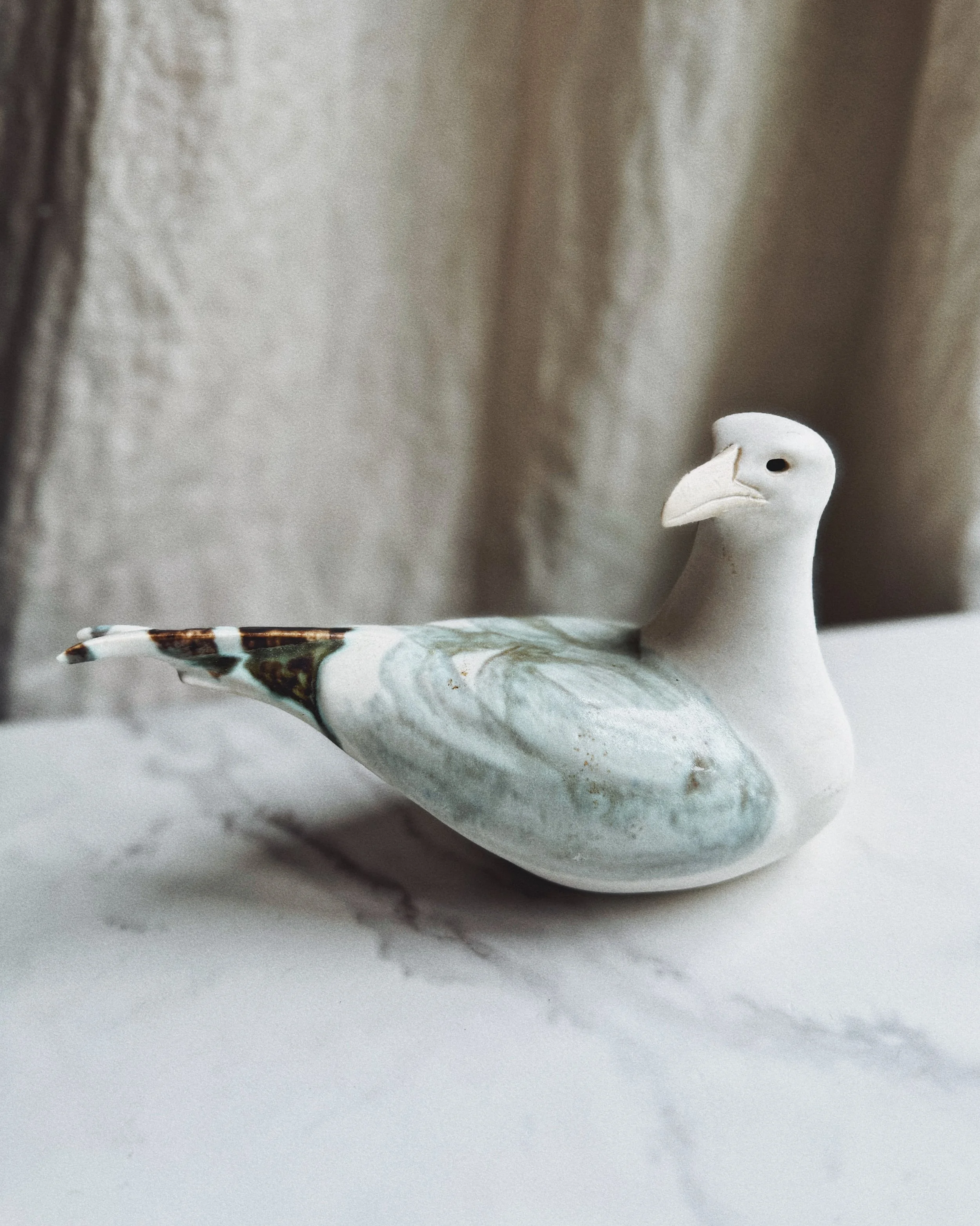 Vintage Andersen Design studio pottery ceramic seabird featuring a soft matte white glaze with seafoam and earthy marbling along the wings and tail. Minimalist in form yet textural in finish - a serene coastal accent that styles beautifully on shelves or coffee tables.