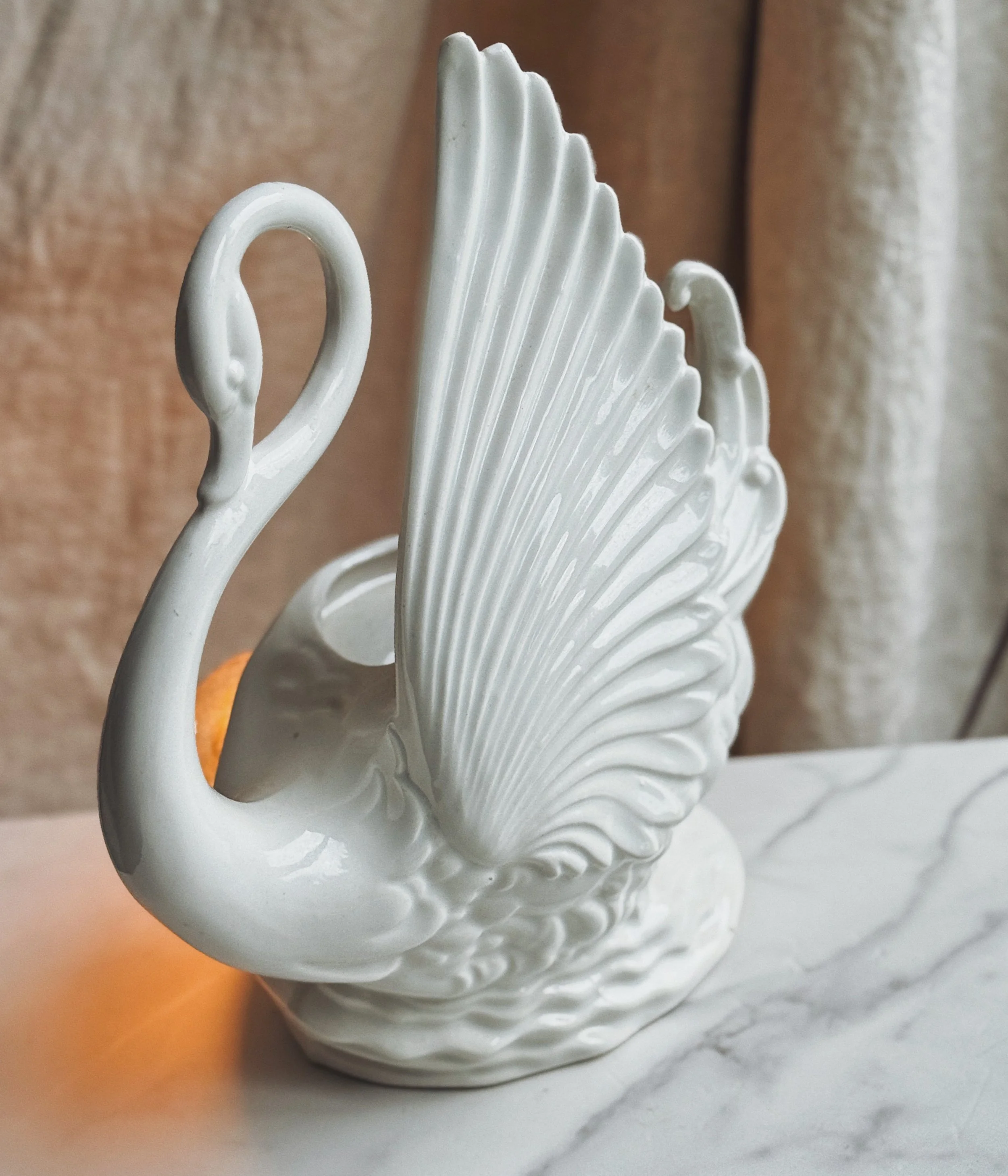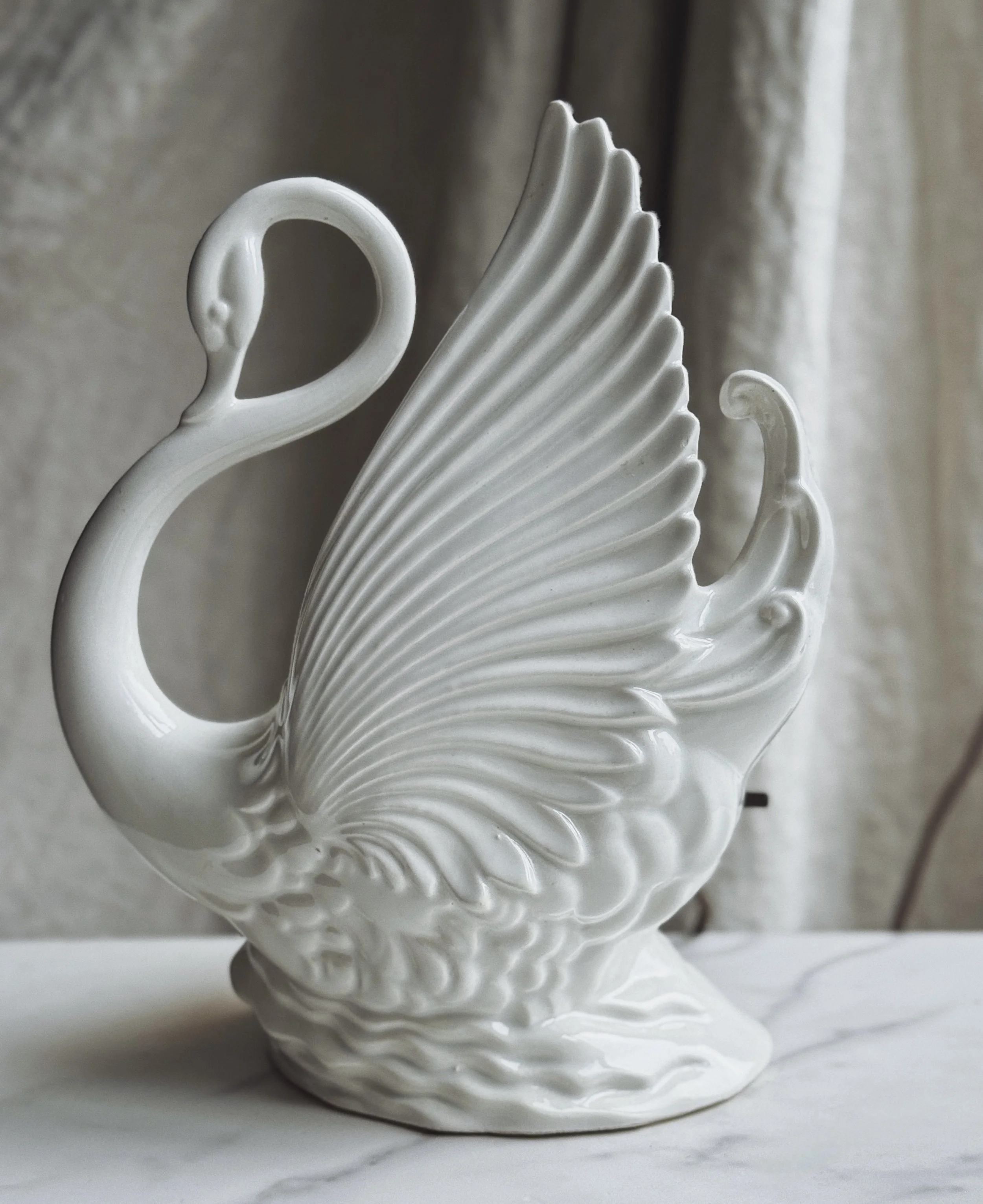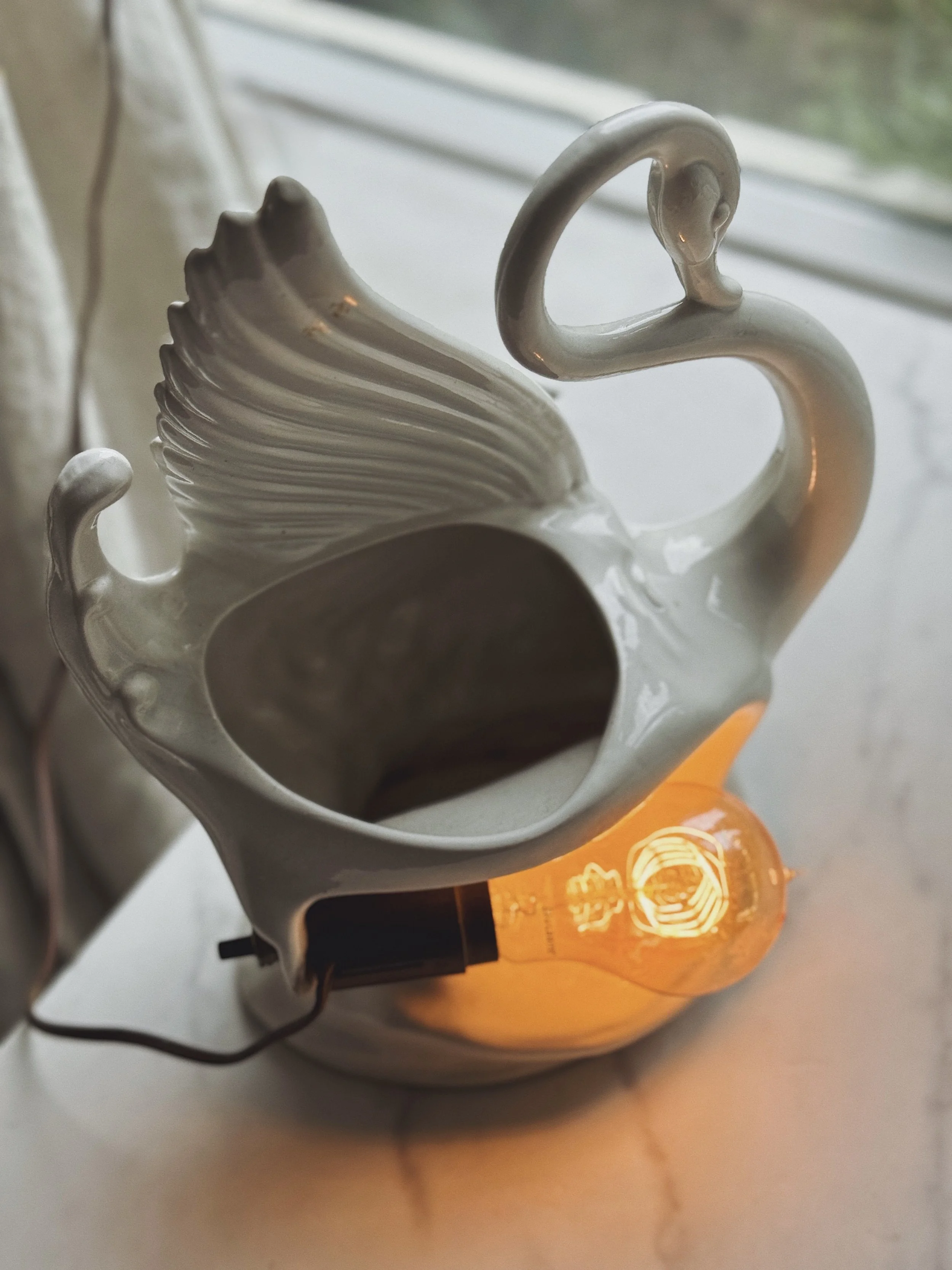 Beautiful midcentury modern white ceramic swan lamp with planter/vase.